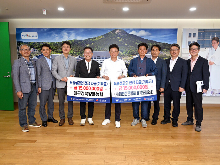 12일에는 (사)대한한돈협회 경북도협의회와 대구경북양돈농협가 경북도청을 방문해 저출생 극복 성금 3,000만원(한돈협회 15,00만원, 양돈농협 1,500만원)을 전달했다.