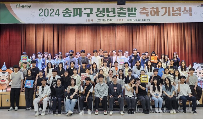 [시민일보 = 이대우 기자] 서울 송파구(구청장 서강석)는 제52회 성년의 날을 맞아 지난 18일 송파구청에서 2005년생 100여명이 자리한 가운데 「2024년 송파구 성년출발 축하 기념식」을 성황리에 개최했다고 밝혔다.