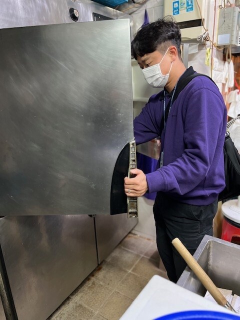 | ▲ 음식점의 위생 상태를 점검하고 있는 모습 (사진=중랑구청 제공) |