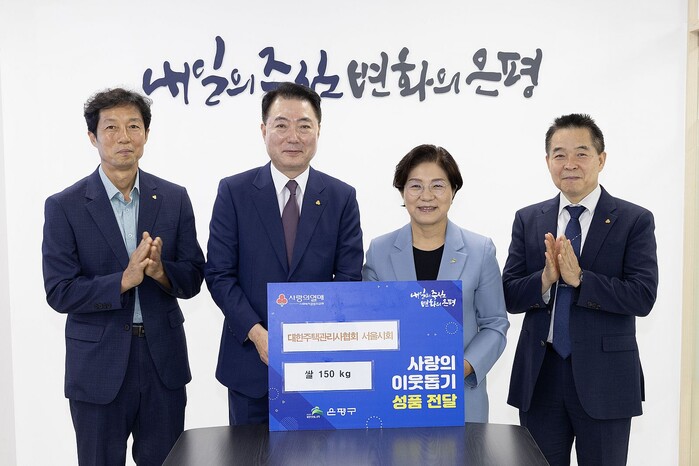 [시민일보 = 이대우 기자] 서울 은평구(구청장 김미경)는 최근 대한주택관리사협회 서울시회 후원 ‘쌀 기증 나눔 행사’를 개최했다고 밝혔다.