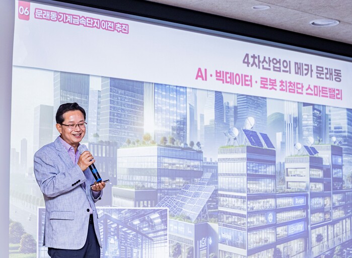 또한 임대료 상승과 산업 생태계 붕괴로 어려움에 처한 ‘문래동 기계금속단지 이전’과 ‘향후 문래동 일대의 개발 구상’을 설명했다. 타당성 조사, 이전 후보지 환경분석 등 종합적인 검토 후 적정한 후보 장소를 선정할 예정이며, 이전 후에는 문래동 기계금속단지에 미래 첨단 4차 산업 유치와 함께 문래동을 최첨단 스마트밸리로써 기존과 완전히 새로운 신경제 일자리 중심지로 육성할 청사진을 소개했다.
