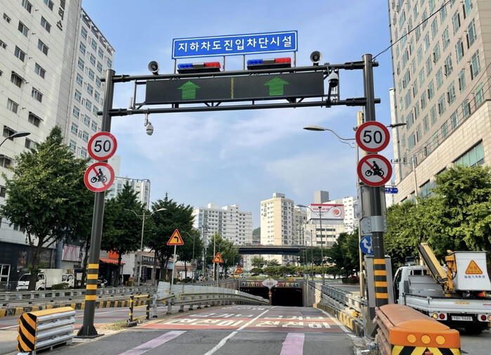[인천=문찬식 기자] 인천 남동구가 집중호우로 인한 지하차도 침수피해 예방을 위해 간석지하차도에 진입 차단시설 설치를 완료했다.