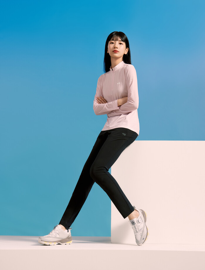 목까지 올라오는 집업 형태로 뜨거운 햇살로부터 뒷목을 보호하고 메쉬 소재로 통기성이 뛰어나다. 자외선 차단이 용이한 긴 팔 제품과 반팔 2가지 종류로 출시됐으며 기하학 패턴으로 시선을 분산해 체형 노출을 보완했다.