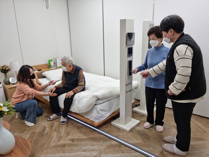 또한, 수면 중 바이탈 체크 시스템을 통해 응급 상황 발생 시 요양보호사나 보호자가 치매 환자의 상태를 확인할 수 있는 시스템과 온습도 체크, 낙상 통보, 화재 감지 기능이 탑재된 복합 안전 시스템도 체험해 볼 수 있다.