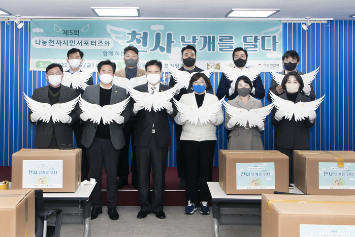 이날 오전 진행된 제221회 정례회를 마친 의원들은 김포복지재단에서 시행하고 있는 ‘천사 날개를 달다’에 동참하기 위해 시의회 브리핑룸 모였다.