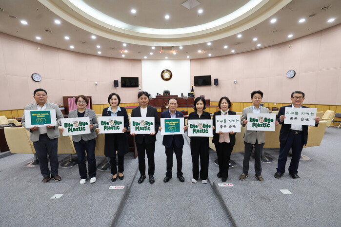 [시민일보 = 변은선 기자] 서울 성북구의회(의장 오중균) 운영위원회(이호건 위원장, 정기혁 부위원장, 김경이, 박영섭, 소형준, 양순임, 임태근, 임현주, 진선아 의원)는 최근 일회용품 사용을 근절하기 위해 ‘바이바이 플라스틱 (Bye Bye Plastic)’ 챌린지에 참여했다.