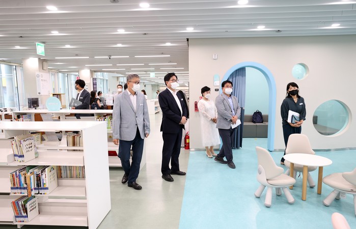 | ▲ 박 구청장이 지난 7월22일 서울 흑석동 까망돌 도서관을 방문해 현장을 둘러보고 있다.(사진제공=동작구청) |