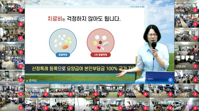 특히, 화상교육 시스템을 활용한 비대면 강의 방식을 도입해, 시공간의 제약 없이 노인들이 편리하게 건강정보를 습득할 수 있도록 했다.