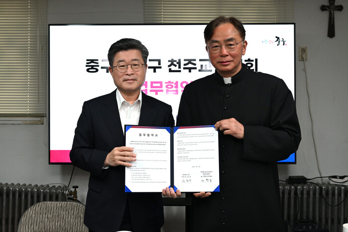[시민일보 = 여영준 기자] 중구(구청장 김길성)가 지난 20일 천주교 신당동성당에서 중구 천주교협의회와 지역사회 발전과 주민의 삶의 질 향상을 위한 업무협약을 체결했다.