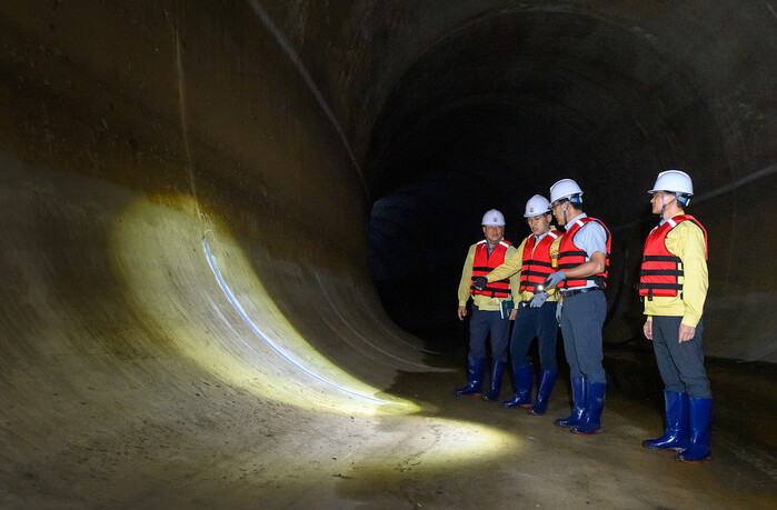 | ▲ 지난해 5월 국내 유일 대심도 빗물터널인 신월빗물저류배수시설을 현장점검 중인 이기재 구청장. (사진=양천구청 제공) |
