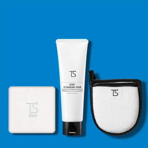 스테디셀러템 ‘TS 여드름&클렌징 3-SET’는 세안비누와 저자극 폼클렌징 그리고 페이스 타올로 구성된 딥클렌징 세트 제품으로 번들거리는 유분기와 모공 속 노폐물 등 피부 사이사이의 더러움을 효과적으로 클렌징 할 수 있도록 돕는다.