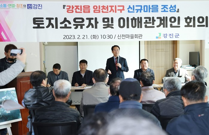 강진원 강진군수는 “이번 모임에서 제시된 의견을 면밀히 검토하고 신규마을 조성사업의 첫 시작인 임천지구가 성공적으로 준공·분양될 수 있도록 군에서도 행정적인 지원을 아끼지 않겠다”며 “사업 추진을 위해서는 임천지구 토지소유자들의 토지사용 승낙이 가장 중요하므로 강진군 발전을 위해 주민들의 많은 관심과 적극적인 협조를 당부 드린다.”고 말했다.