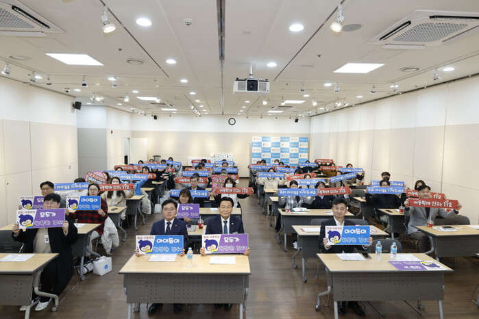강서구가 최근 진교훈 구청장을 비롯해 경찰청, 강서경찰서, 꿈마루·꿈누리쉼터 등 민·관·경 전문가 60여명이 참석한 가운데, 겸재정선미술관에서 ‘아동학대 대응 유관기관 성과공유회’를 개최했다. 사진은 진 구청장(앞줄 왼쪽 두 번째)이 기념 촬영을 하는 모습. (사진=강서구청 제공)