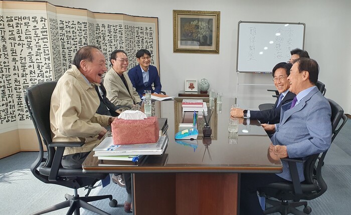[청주=최성일 기자] 2027 충청권 하계세계대학경기대회 조직위원회(이하 “조직위원회”) 강창희 위원장은 지난 19일 오후 3시 한국언론진흥재단을 방문해 김효재 이사장과 대회의 성공개최를 위한 상호협력 방안에 대한 의견을 나눴다.