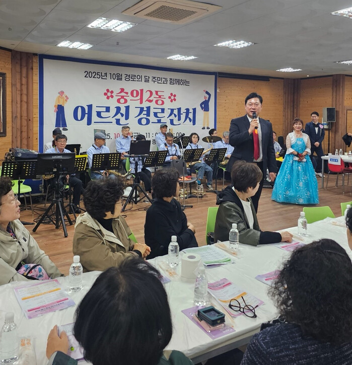 어르신들에게는 뷔페 음식과 신선한 과일이 정성껏 제공됐으며, 식사와 함께 실버행복예술단의 감동적인 축하공연도 진행돼 행사의 즐거움을 더했다.