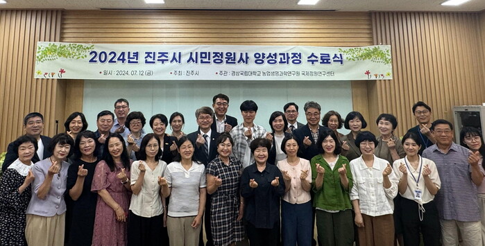 진주시는 12일 경상국립대학교 칠암캠퍼스에서 ‘제3기 진주시민정원사 양성교육 기초과정 수료식’을 가졌다.