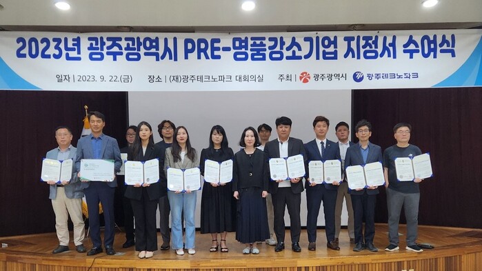 [광주=정찬남 기자] 광주광역시(시장 강기정)는 지역경제를 견인할 ‘2023년 제7기 예비(PRE)-명품강소기업’ 13곳을 선정하고 22일 광주테크노파크에서 지정서 수여식을 가졌다.
