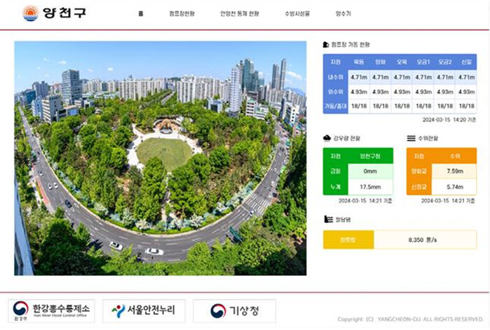 [시민일보 = 이대우 기자] 서울 양천구(구청장 이기재)는 본격적인 우기를 앞두고 수방정보 공유 시스템을 새롭게 구축하고 구민에게 실시간으로 안양천 통제 현황을 제공한다.