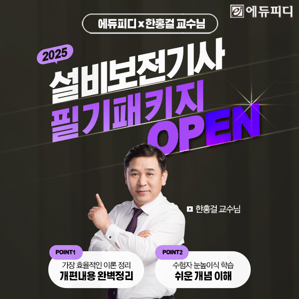 에듀피디가 선보이는 설비보전기사 ‘필기 패키지’는 25년 개편 과목 전 범위를 커버할 수 있는 ‘기본이론+문제풀이’ 과정과 최신 기출문제를 풀어보며 시험의 감을 잡을 수 있는 ‘기출해설특강’으로 구성된 강좌로, 최신 출제기조에 맞춰진 집약적인 학습 진행으로 단기에 합격권의 점수 확보가 가능하도록 돕는다.