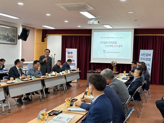 광주자치경찰위원회는 4일 평동행정복지센터에서 광산구 주민자치협의회와 간담회를 갖고 자치경찰제를 설명하고 시민의견을 수렴했다.