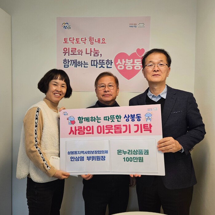 상봉동 행정복지센터는 이날 기탁된 상품권을 진주시복지재단을 통해 관내 취약계층 가정에 전달할 예정이다.