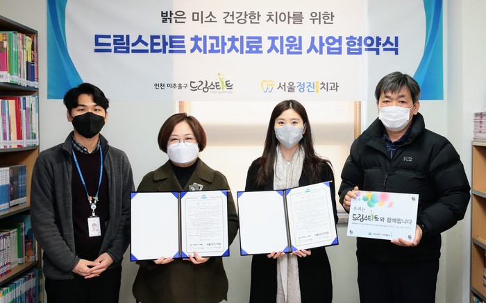 [인천=문찬식 기자] 인천 미추홀구 드림스타트는 9일 서울정진키즈치과와 드림스타트 아동들에 대한 치과 치료 지원을 위한 업무협약을 체결했다.