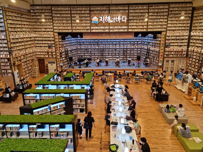 마산지혜의바다도서관은 공공도서관의 전통적인 자료보관 및 열람과 학습 공간에서 벗어나, 레고.보드방, 힐링방, 웹툰방, 카페테리아, 공연 공간 등 다양한 공간을 배치하여 새로운 패러다임을 제시한 점에서 높은 평가를 받았다.