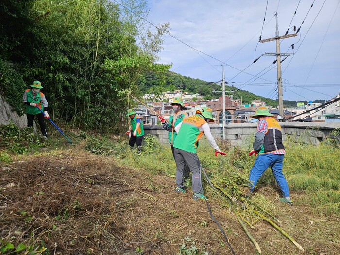 진주시 상봉동 자율방재단(단장 설대호)은 지난 25일 여름철 재난 안전 우려가 있는 봉황숲 주변을 정비했다.