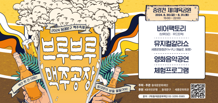 [시민일보 = 이대우 기자] 동대문구(구청장 이필형)가 오는 30~31일 중랑천 제1체육공원에서 ‘2024 동대문구 맥주축제, 브루브루 맥주공장’을 개최한다.