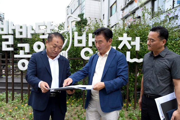 김동근 경기 의정부시장은 시민들의 만족도가 높은 공원으로 조성 방향을 모색하고자 지난 14일 발바닥 공원(서울 도봉구 소재)과 동오리 어린이공원(신곡동 소재) 등 2곳을 방문했다. 사진은 김 시장(가운데)이 관계자들과 발바닥 공원을 둘러보고 있는 모습. (사진제공=의정부시청)