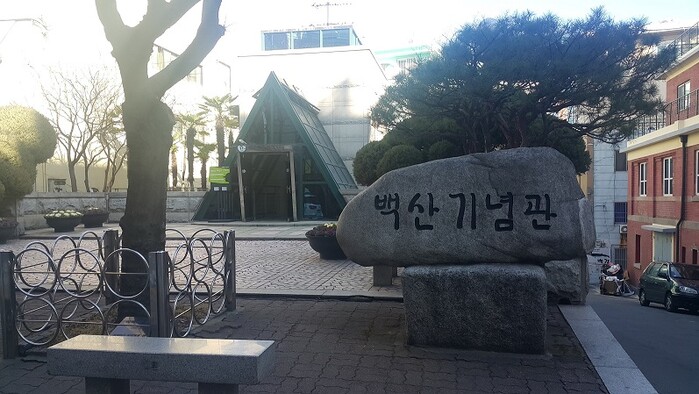 백산 기념관은 일제 강점기 독립운동 자금조달과 비밀연락망 등의 거점으로 활용되었던 옛 백산상회 자리에 1995년 건립되어, 독립운동가 안희제 선생의 애국심을 기리고 후세에 그 뜻을 길이 전하고 있다. 기념관 전시실에는 안희제 선생의 유품과 독립운동 자료 80여점이 전시되어 있다.
