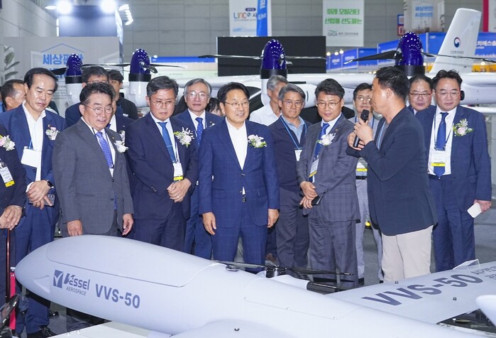 강 시장은 개막식 후에 엑스포 전시장에 마련된 국내외 207여개사 543개 부스의 신기술·신제품을 둘러봤다. 특히 현대차·기아의 전기차, 차량자동 운송 로봇을 비롯해 전기비행기, 도심항공교통(UAM) 시대의 드론과 경량비행기 등의 기술력을 확인했다.