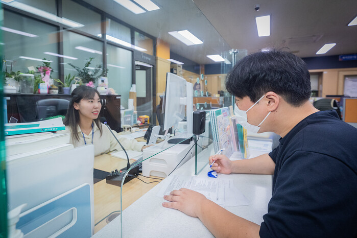 | ▲ 강화유리 가림막이 설치된 주민센터 민원실 전경. (사진=양천구청 제공) |