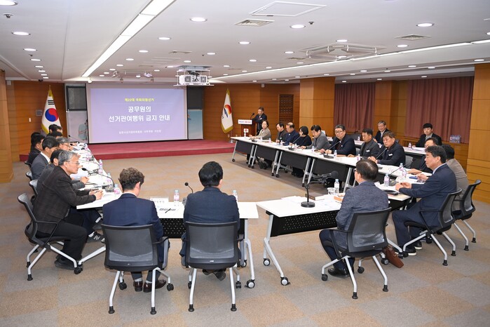 이삼근 행정지원국장은 “선거가 얼마 남지 않은 만큼 선거가 차질 없이 추진될 수 있도록 공무원의 선거 중립과 공직기강 확립에 최선을 다하여 투명한 선거문화가 정착되도록 노력하겠다.”라고 말했다.