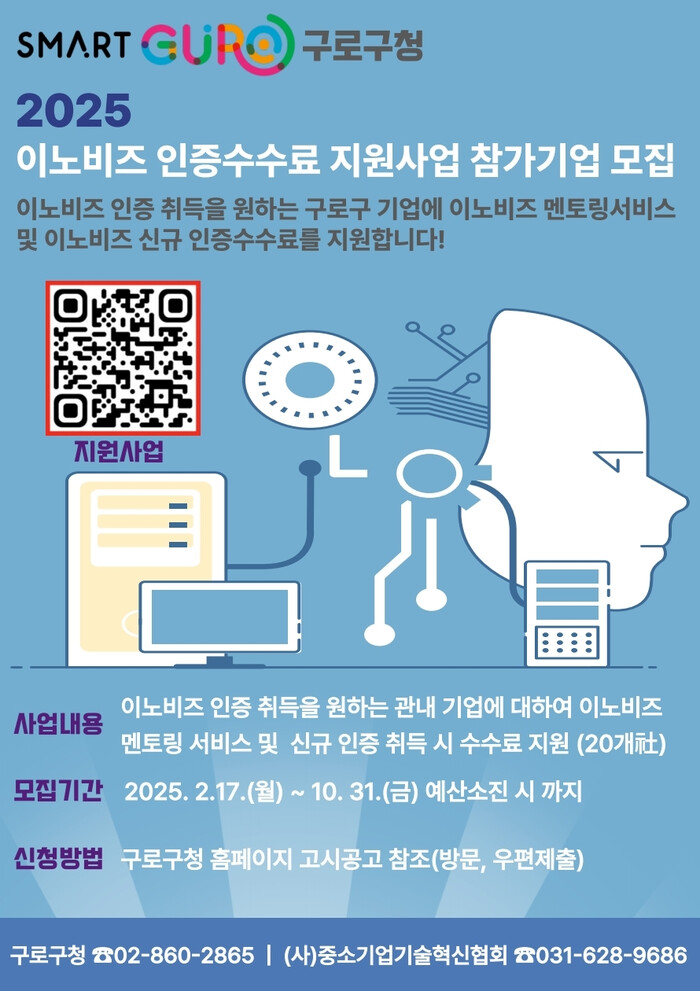 | ▲ 2025년 이노비즈 인증 수수료 지원 사업 홍보 안내문. (사진=구로구청 제공) |