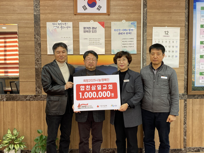 오미화 합천읍장은 “우리 지역의 소외된 주민을 위해 정성 가득한 성금을 기탁해주신 합천삼일교회에 감사드린다”며, “연말연시 어려운 이웃들이 따뜻하게 보낼 수 있도록 잘 전달하겠다”고 전했다.