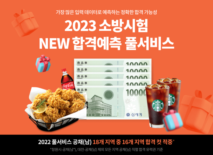 시험 당일인 18일 오전 10시부터 오후 5시까지 풀서비스 빠른 채점을 이용하는 수험생에게 추첨을 통해 시간대 별로(▲시험 종료~2시 50명 ▲2~3시 30명 ▲3~4시 15명 ▲4~5시 5명) 백화점 상품권 3만 원을 증정하고, 채점 입력자 대상 선착순 200명에게는 김동준 강사의 면접 강좌를 증정한다.