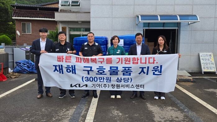 기아 창원서비스센터는 26일 오후 2시 합천군 가회면사무소를 찾아 생수와 초코파이, 물티슈 등 총 300만원 상당의 성품을 전달했다.