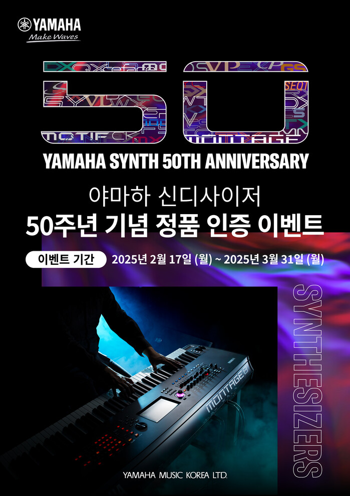 세계적인 악기 및 음향 전문기업 야마하뮤직코리아㈜(대표: 무쿠노 켄스케)가 자사의 신디사이저 제품 출시 50주년을 기념해 고객 이벤트를 진행한다고 17일 밝혔다.