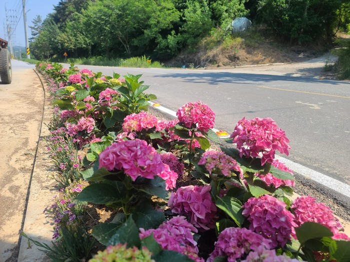 싱그러움이 가득한 꽃길은 소재지를 따라 활짝 핀 수국, 샤피니아, 고광나무, 향기 카네이션, 페튜니아, 메리골드, 백일홍 4,000여 본이 예쁜 자태와 향기를 뽐내며 춘풍원 도농교류센터 방문객의 발길을 유혹하고 있다.
