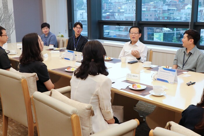 조병규 은행장은 이날 참석한 MZ 행원 모두의 별칭을 부르고 관심사와 애로사항을 먼저 들었다.