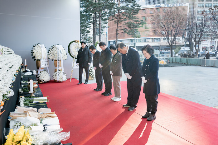 [시민일보 = 여영준 기자] 서울 광진구의회(의장 전은혜)가 2일 제주항공 여객기 사고 희생자들을 추모하기 위해 서울시청 본관 앞에 마련된 합동분향소를 찾아 조문했다.