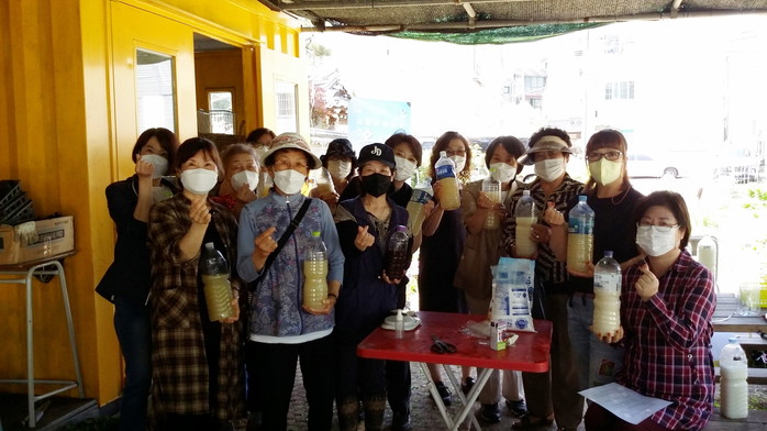 경기 수원시 권선구 서둔동은 24일 여기산 커뮤니티 가든에서 생활밀착형 환경교육의 일환으로 ‘여기산 옹심이 EM 교육’을 실시해 EM의 개념·유용성 등에 대한 이론교육 후 EM 원액과 쌀뜨물을 이용해 EM 발효액을 직접 만들었다. 사진은 이날 참가자들이 기념촬영을 하는 모습. (사진제공=권선구청)