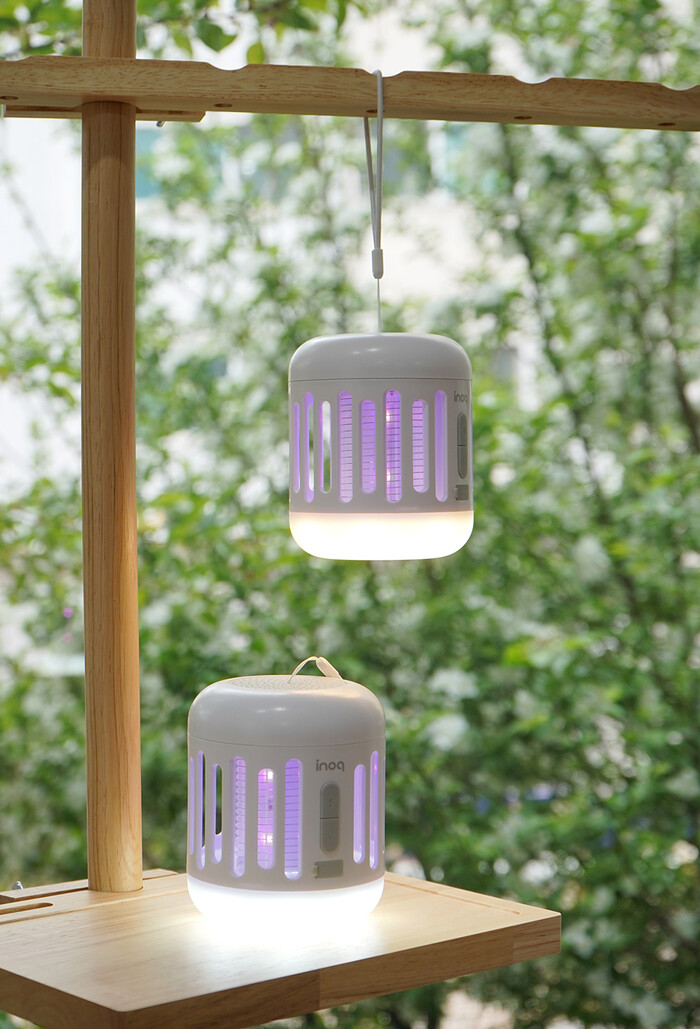 이노크아든 모기퇴치기는 랜턴 색상을 선택할 수 있다. 3500K의 옐로우, 6500K화이트 불빛으로 사용자가 원하는 랜턴 불빛으로 사용하고, 사각지대 없이 360도 포집이 가능해 아기가 있는 가정에서 아이와 외출 시 간편하게 휴대해 유모차에 걸어 사용할 수 있어 더욱 효과적이다.