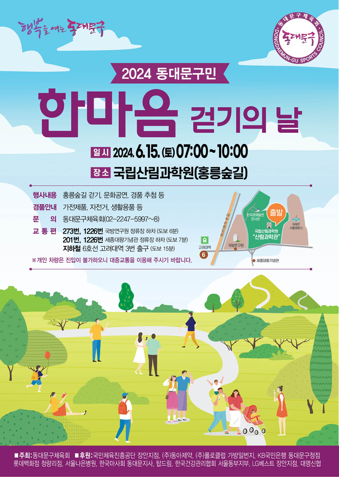 이번 행사는 동대문구체육회 주최, 동대문구 후원으로 진행되는 것으로, 홍릉숲 산책로 3km를 걷는 코스로 진행된다.