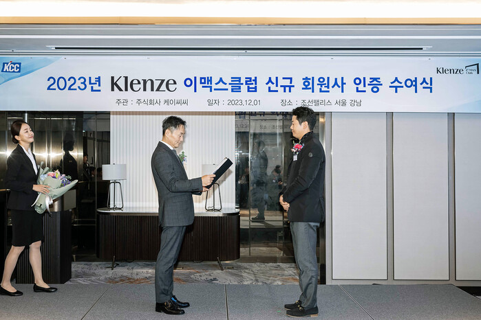 [시민일보 = 홍덕표 기자] KCC가 하이엔드 창호 브랜드 Klenze(클렌체) 품질 우수 가공 대리점을 대상으로 ‘가공 전문 인증 자격’을 부여하는 Klenze 이맥스클럽(e-Max Club) 인증 수여식을 최근 개최했다.