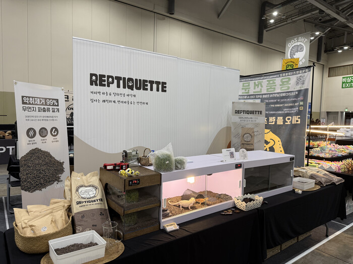 특히 현장에서 주목할 만한 전시는 커피박을 깔개로 활용한 파충류 생태존이다. 방문객은 실제 제품을 만져보고, 커피박의 탈취력과 습도 조절 기능을 직접 확인할 수 있다. 이밖에도 고양이 모래, 차량용 방향제, 재생 포장재, 친환경 화분 등 커피박을 활용한 다양한 제품들이 소개된다.