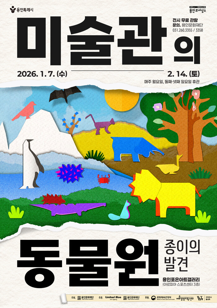 [용인=오왕석 기자] 용인문화재단(이사장 이상일)은 2026년 1월 7일부터 2월 14일까지 용인포은아트홀갤러리에서 겨울방학 어린이 가족을 위한 체험형 전시 「미술관의 동물원 –종이의 발견–」 전을 개최한다.