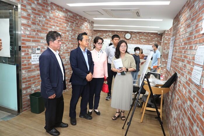 이날 현장을 방문한 이광규·이응주·박희연 의원은 시설 구석구석을 살피며 주민 이용에 부족한 점은 없는지 살피고 다양한 의견을 펼쳤다.