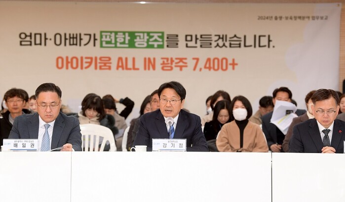 광주광역시(시장 강기정)는 30일 시청 중회의실에서 강기정 시장, 출생·보육정책 전문가, 유관기관 관계자 중소기업 직원 및 학부모, 신혼부부 등 100여 명이 참석한 가운데 ‘2024년 출생·보육분야 업무보고회’를 개최했다.